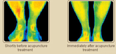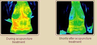The effect of acupuncture on the areas of pain is generally confirmed using thermograms taken by an infrared imaging system. Areas of chronic pain, inflammation, wound healing, or disease can be evaluated thermographically to assist the physician with a diagnosis and treatment plan in the following way:
